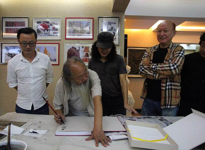 徐培晨教授向東郭介紹自己的猿猴畫(huà)作