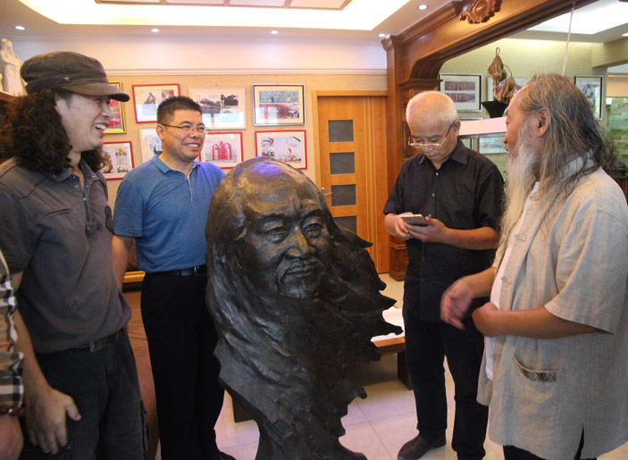 徐培晨肖像南京先登雕塑,號(hào)猿公,別名沛人,1951年9月生于江蘇沛縣。1976年畢業(yè)于南京師范學(xué)院美術(shù)系。現(xiàn)中國(guó)畫(huà)學(xué)會(huì)創(chuàng)會(huì)理事、中國(guó)美術(shù)家協(xié)會(huì)會(huì)員、江蘇省花鳥(niǎo)研究會(huì)會(huì)長(zhǎng)、南京師范大學(xué)美術(shù)學(xué)院教授,博士生導(dǎo)師、江蘇省政協(xié)委員。中國(guó)畫(huà)山水、人物、花鳥(niǎo)俱佳,尤精丹青猿猴,有“金陵徐猿猴”、“東方猴王”之美譽(yù)。