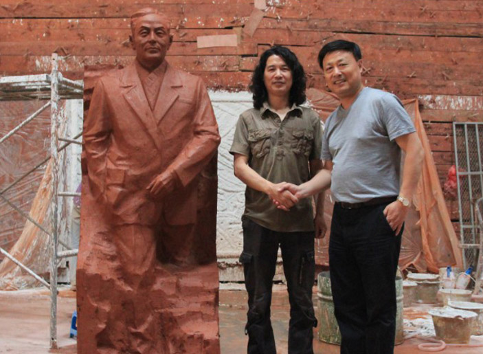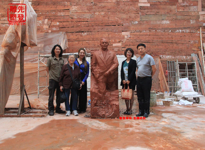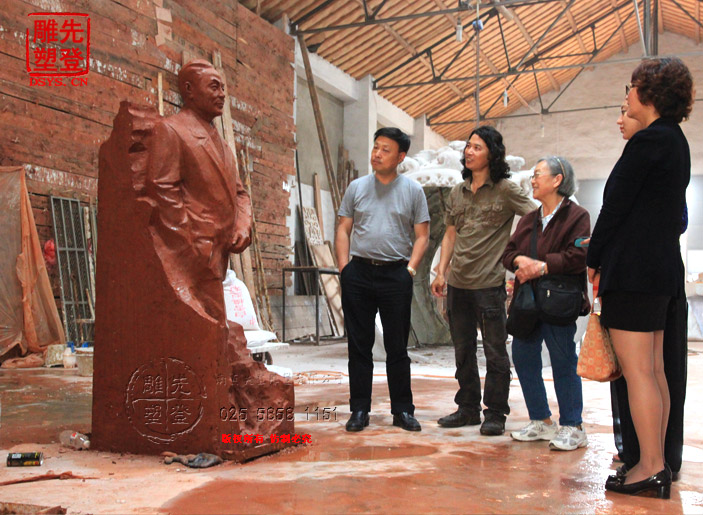 先登雕塑公司,東郭雕塑工作室受有關(guān)部門委托,為東南大學(xué)楊廷寶故居創(chuàng)作青銅全身像,楊廷寶之女,楊士英教授及其孫女、潘翔處長和相關(guān)領(lǐng)導(dǎo)蒞臨先登雕塑公司指導(dǎo)