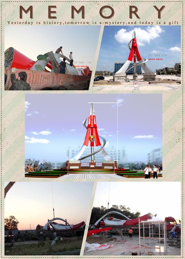 2013-6-10安放:安徽國際高業(yè)職業(yè)技術學院,不銹鋼雕塑,總高16米