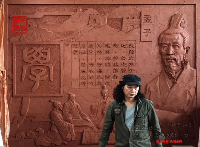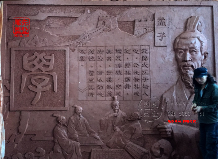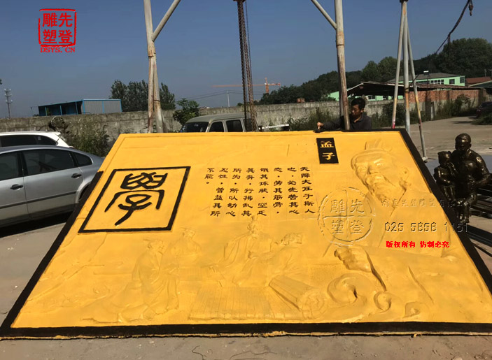 鑄銅雕塑創(chuàng)作中學(xué)校文化墻系列6塊浮雕留影
